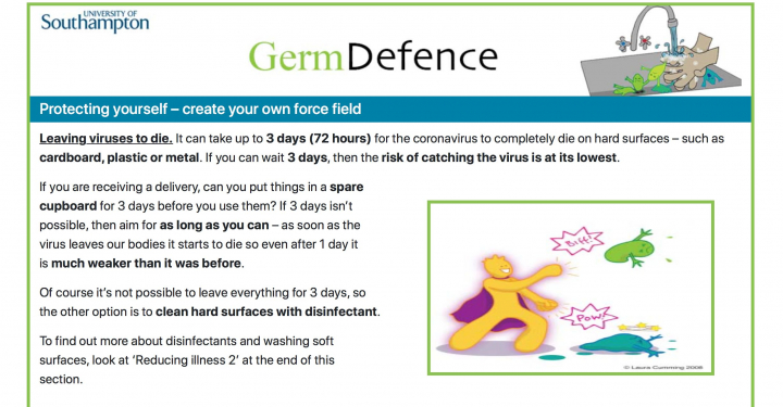 La recomendación de Dejar morir al virus forma parte de la lista de consejos preventivos englobados en la web Germ Defence, del Servicio de Salud Pública de Reino Unido. “Si puedes esperar tres días, el riesgo de contraer el virus es mínimo”, apuntan.