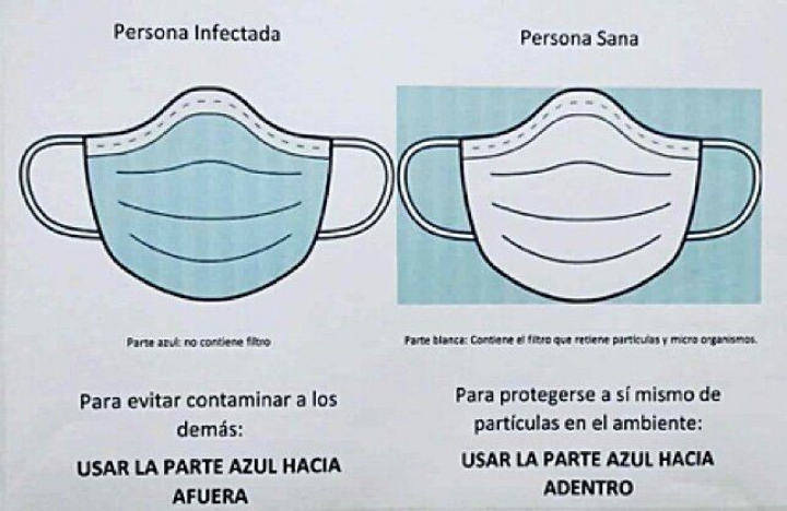 Si las personas enfermas deben llevar la parte azul hacia fuera para no contagiar, las personas sanas deberían llevarla hacia dentro para no contagiarse. NO. Nada más lejos de la realidad.