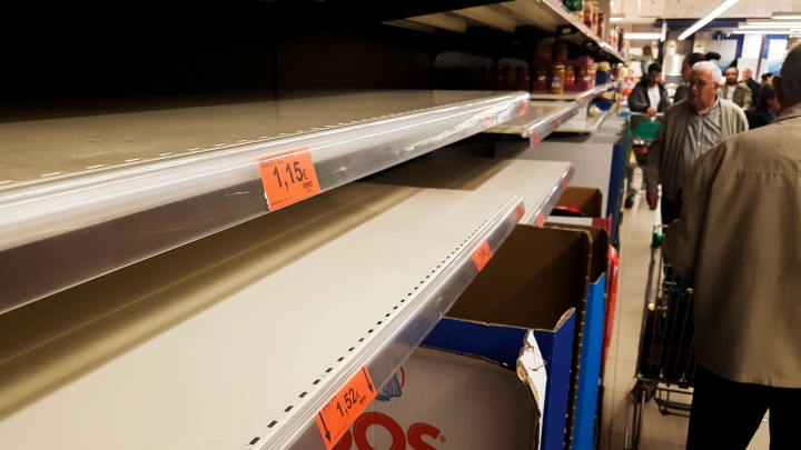 Estanterías vacías, carros llenos de productos inverosímiles, trabajadores desesperados, medidas extraordinarias, cancelación de los pedidos online y colas en la puerta.