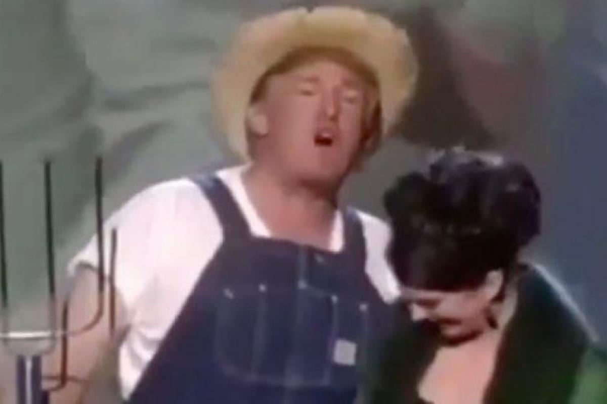 En la cinta, Trump aparece con un mono azul, sombrero de paja y una horca junto a la actriz Megan Mullally cantando el tema de 'Green Acres', una 'sitcom' de finales de los años sesenta que trataba de una pareja que se mudaba de Nueva York a una granja en el campo.
