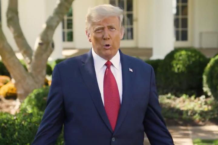 Fuera de su confinamiento, con el tono recuperado, el magnate de EEUU se presenta como "vuestro presidente favorito" en un vídeo de campaña pura