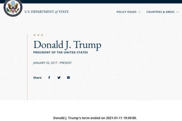 “El mandato de Donald Trump ha terminado el 11 de enero de 2021 a las 19:49:00”. Esta frase, aparecida en la web del Departamento de Estado de EEUU, habrá causado más de un sobresalto a la ya de por sí convulsa política norteamericana. Pero no, esta vez no iba en serio.