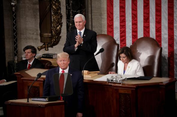 El homenaje de Trump a Guaidó fue recibido con una multitudinaria ovación en el pleno de la Cámara de Representantes, que acogía tanto a senadores como a congresistas, y con los aplausos, de pie y sonriendo, de la presidenta de ese hemiciclo, la demócrata Nancy Pelosi.