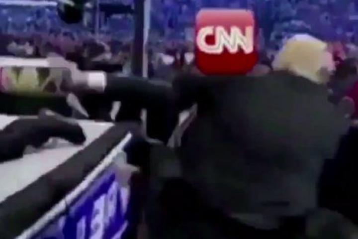 Después de tres días en los que ha llamado "loca" y "retrasada" a una periodista, y a su compañero lo tildó de "psicópata", de decir que en la cadena MSNBC son "tontos como una piedra", de denunciar a los "falsos" y "fraudulentos" medios de comunicación, hoy ha llegado el no va más (por ahora): ha publicado un vídeo en el que, bajo la etiqueta "FraudNewsCNN" (Noticias fraude CNN), se ve al propio presidente de los EEUU en uno de sus cameos en la lucha libre, agrediendo a un personaje al que alguien le ha colocado por cabeza el logotipo de la CNN, su último demonio particular.