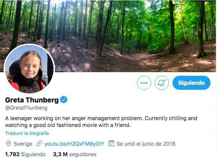 La reacción de Greta no ha podido mejor. Solo basta con mirar la bio de su perfil de Twitter.