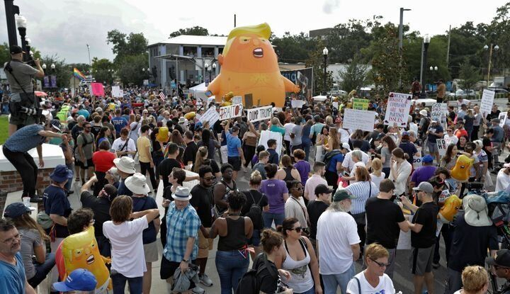 Antes del acto, el Partido Demócrata de Florida publicó un sondeo: el 70% de los residentes del área de Orlando desaprueba el trabajo de Trump y sólo el 28% le votaría si las elecciones se celebraran hoy.