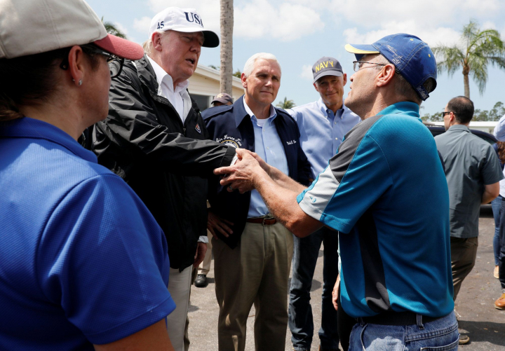 La visita ha llegado mientras quienes evacuaron Florida antes de la llegada de Irma luchan por volver a sus hogares, con decenas de miles de profesionales trabajando contrarreloj para devolver la electricidad a millones de usuarios.