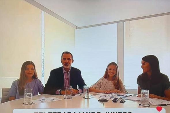 Junto a las imágenes de los monarcas y sus hijas, el programa de la cadena pública situó un rótulo en el que se pudo leer lo siguiente: “Teletrabajando juntos”.