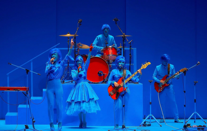 Y es que el aspecto musical es importante para esta producción. Tanto que por un lado está la música en directo, la que trata de recuperar el twist o el pop adolescente de aquella época con un sonido algo más guitarrero o garajero. Con el que se trata de hacer bailar al público. Por otro una música más sinfónica enlatada, que tal vez funcione mejor para el acompañamiento de los números de circo y la poesía, o poética, extraña y feminista de la Pazos.