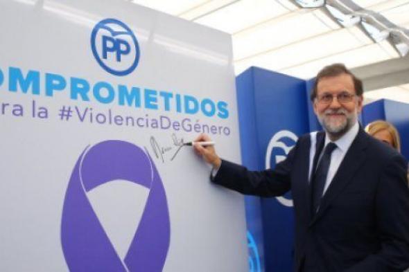 "¿Con este se os ocurren locuras? Lo pone a huevo eh", ha tuiteado @Berlustinho con la foto de Rajoy con un rotulador y el cartel que estaba pintando —en el que originalmente se lee "Comprometidos contra la Violencia de Género"— en blanco.