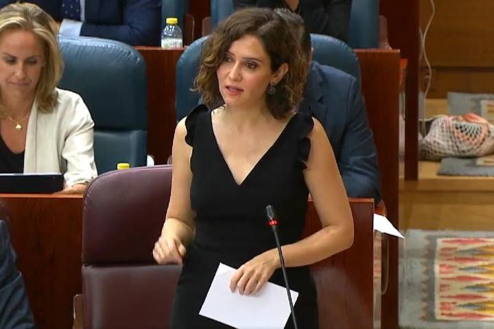 Durante una de sus respuestas a la diputada de Unidas Podemos Alejandra Jacinto, la presidenta madrileña aseguró que lleva más de 40 años trabajando en la Comunidad de Madrid.