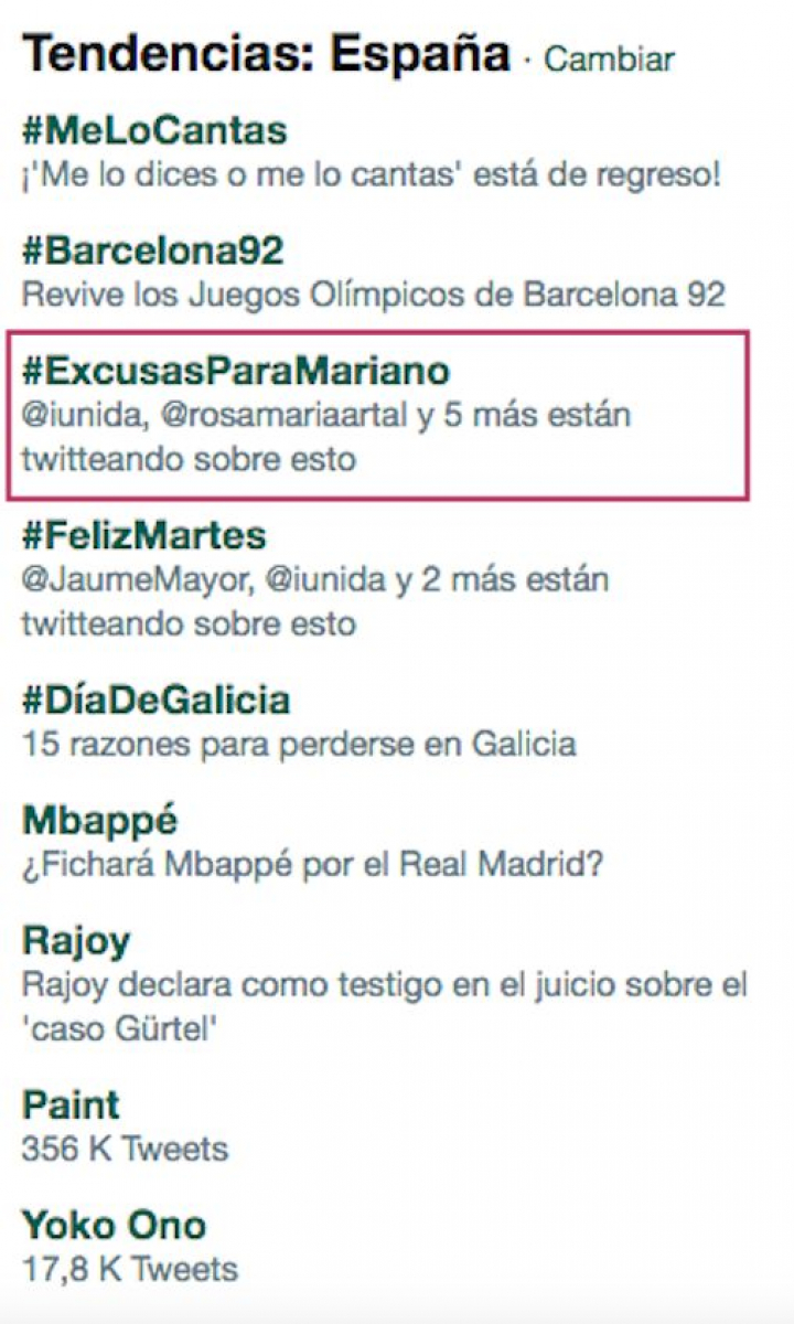 La declaración de este miércoles ante el juez —en calidad de testigo— del presidente del Gobierno, Mariano Rajoy, en el marco de la trama Gürtel, ha despertado el ingenio de miles de tuiteros, que han elevado a la etiqueta #ExcusasParaMariano a la categoría de tendencia en España.