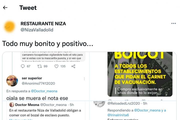 Esta denuncia ha propiciado una oleada de solidaridad con el restaurante Niza, que ha agradecido los mensajes de apoyo.