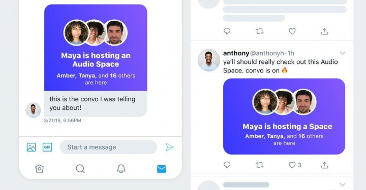 Ambas herramientas son muy parecidas tanto en apariencia como en funcionamiento. Sin embargo, Spaces aprovecha las sinergias propias de pertenecer a esta red social. Se puede compartir el enlace a esa sala de audio mediante mensaje directo, en un tuit e incluso con otras plataformas.