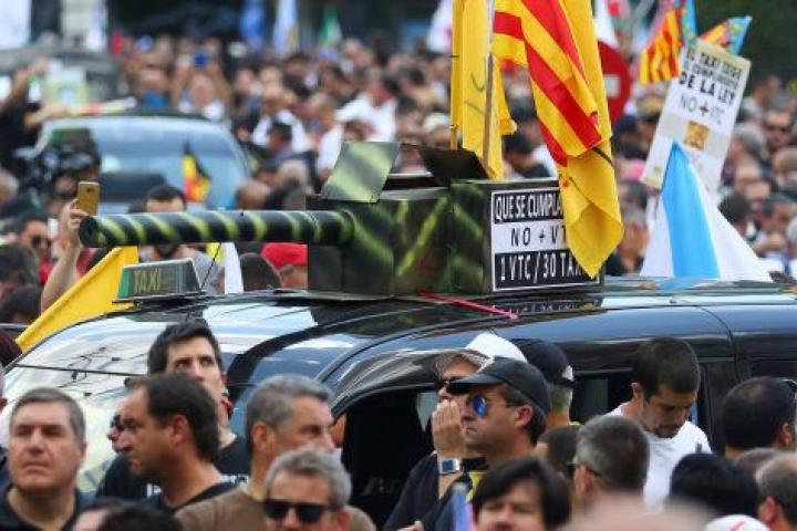 Los taxistas paran para protestar contra los vehículos con conductor, a los que acusan de competencia desleal.