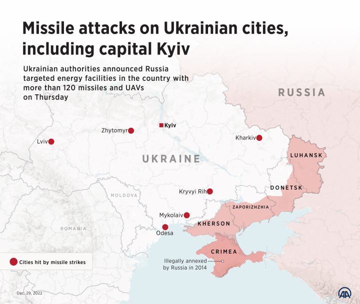 Mijailo Podoliak, también asesor de la Presidencia ucraniana, ha elevado a “más de 120” los misiles disparados por las fuerzas rusas y ha reseñado que el objetivo es “destruir infraestructura crítica y matar civiles en masa”. “Esperamos las próximas propuestas de los defensores de la paz sobre un acuerdo pacífico, garantías de seguridad para Rusia y sobre lo inadecuado de las provocaciones”, ha ironizado.