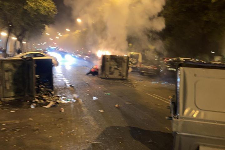 Durante la protesta, que fue disuelta por la Policía, los concentrados cruzaron dos contenedores y una moto en la calle para cortar el paso mientras gritaban consignas como “Libertad” o “Tenemos derecho a estar en la calle”.