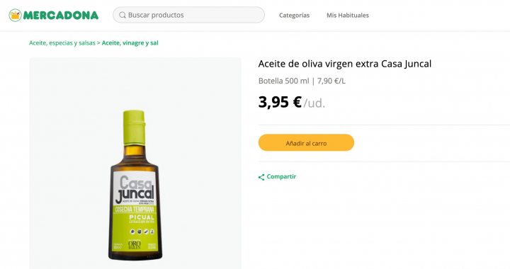 Aceite de oliva virgen extra Casa Juncal.MERCADONA