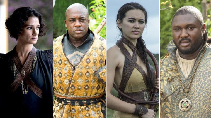 El mejor amigo de Davos Seaworth es el exitoso pirata negro Salladhor Saan. De la misma raza es Areo Hotah, el guardaespaldas y confidente del príncipe Doran Martell en Dorne, una tierra muy diversa. Dos de las Serpientes de Arena —Nymeria y Obara— son de ascendencia asiática y maorí; Oberyn fue encarnado por el actor de origen chileno Pedro Pascal y su amante Ellaria, por la medio india Indira Varma. El esclavista que captura a Jorah y Tyrion es negro también.