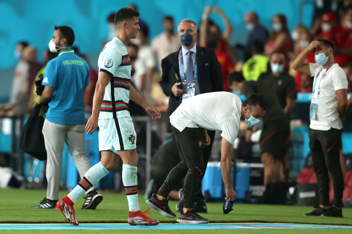 Un asistente corrió a recogerlo y a acompañar a Cristiano y se ve cómo éste hace un gesto de rabia como reprochándole algo. Y así hasta en dos ocasiones.