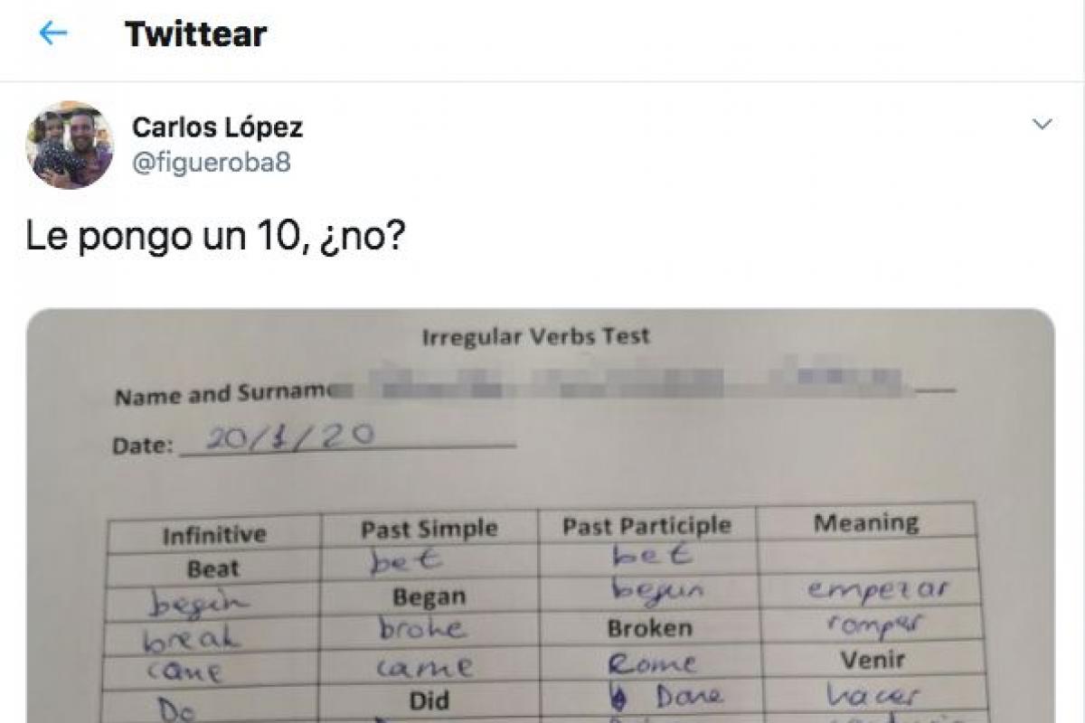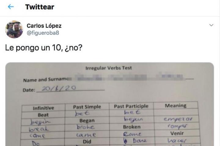 El profesor de inglés Carlos López ha publicado uno de los tuits más virales de la semana al compartir la respuesta que un alumno le dio en un examen.