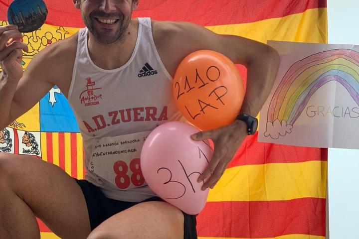 El pasado domingo 22, a la misma hora que se tenía que haber celebrado la media maratón de Zaragoza, Agustín Moreno, un atleta turolense del AD Zuera, dio el pistoletazo de salida a uno de los retos más llamativos de la cuarentena. Él solo en su terraza le ganó la partida a todos los que dicen que es imposible hacer deporte en casa.