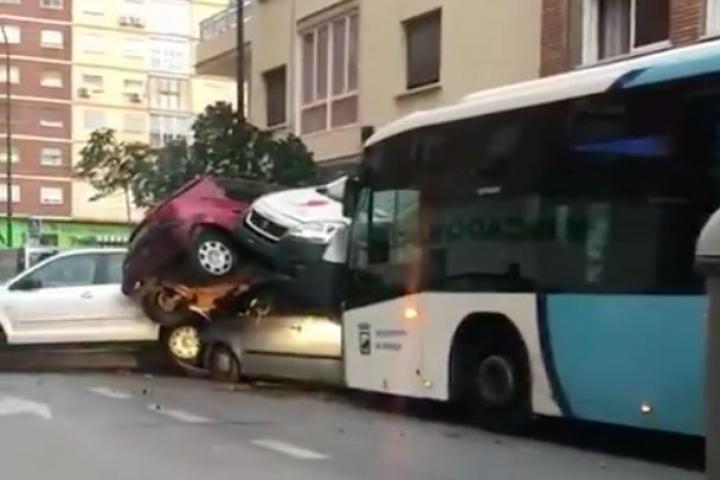 Un autobús arrolla varios coches en Málaga tras desvanecerse el conductor