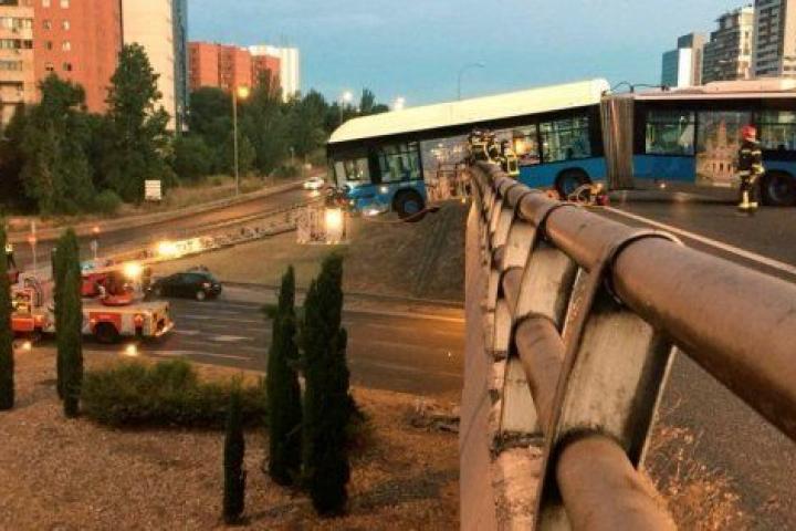 Según ha detallado a Efe una portavoz de Emergencias Madrid, el conductor ha perdido el control por causas que investiga la Guardia Civil y, tras chocar con el lateral de la M-11, ha quedado suspendido del puente, con parte del vehículo, un autobús articulado, fuera de esta estructura.