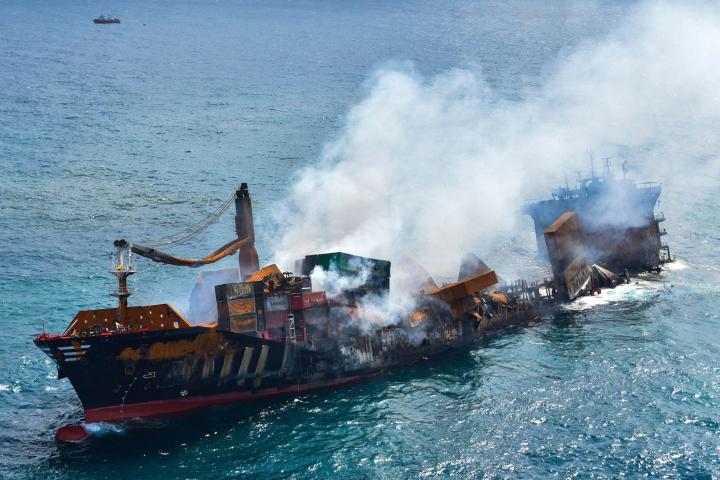 El incendio en el navío, con bandera de Singapur, comenzó hace casi dos semanas cuando se encontraba en ruta a Colombo. Las autoridades han tratado desde entonces de extinguir las llamas, aunque la operación se ha visto complicada por los fuertes vientos asociados al monzón y al reciente paso por la vecina India de un ciclón.