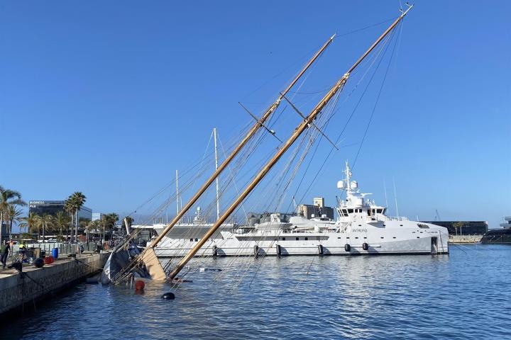 En el intervalo de parar máquinas y fondear con las dos anclas, el Punta Mayor ha chocado contra el yate Eleonora, una goleta clásica fondeada en la Marina Port Tarraco, el recinto del puerto tarraconense para megayates.