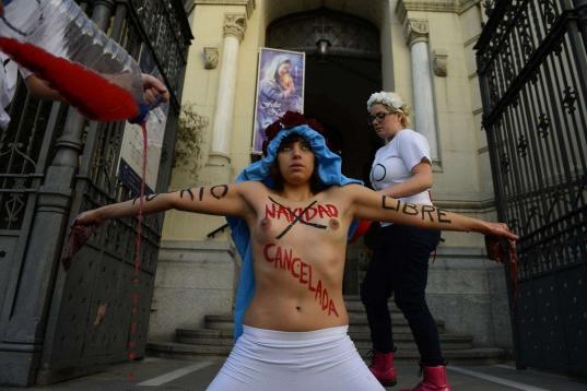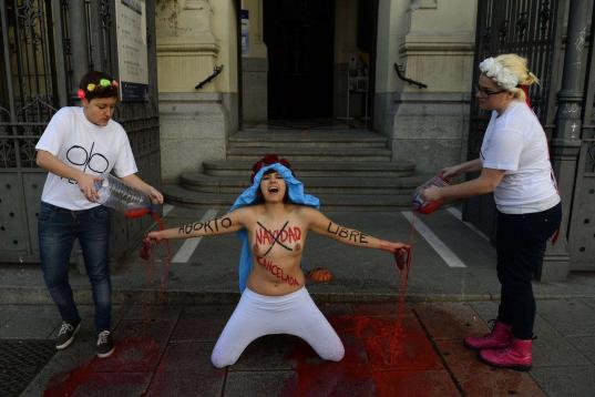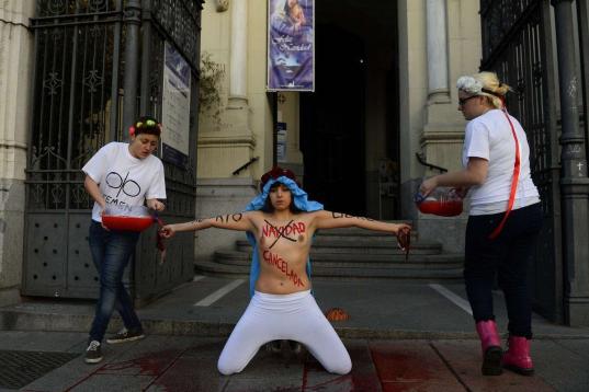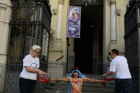 FEMEN protesta contra un acto de Falange en Madrid