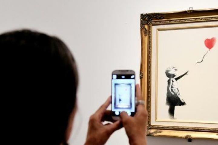 El propio Banksy mostró cómo había instalado una trituradora en el marco que portaba el lienzo con la obraGirl with Ballon,(Niña con globo) y explicó que lo hacía por "si alguna vez fuera puesto en subasta". Una vez vendido, el lienzo se descolgó y se hizo trizas.