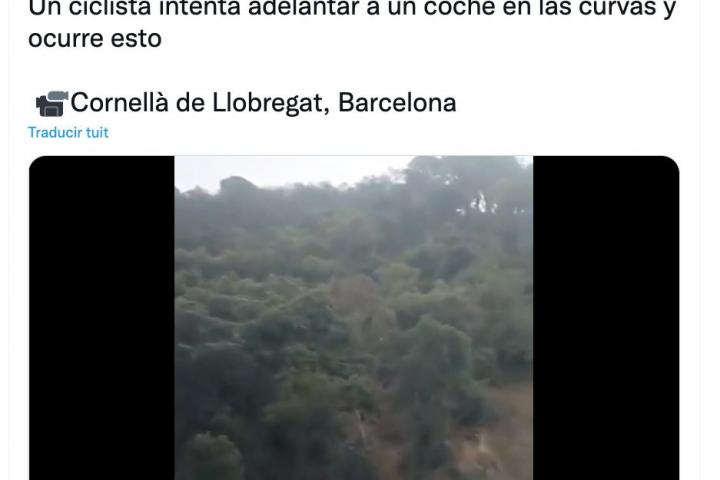 En él se puede ver cómo un ciclista “intenta adelantar a un coche en las curvas” de una carretera de Campins (Barcelona) y acaba chocando contra otro vehículo que venía de frente por el carril contrario.