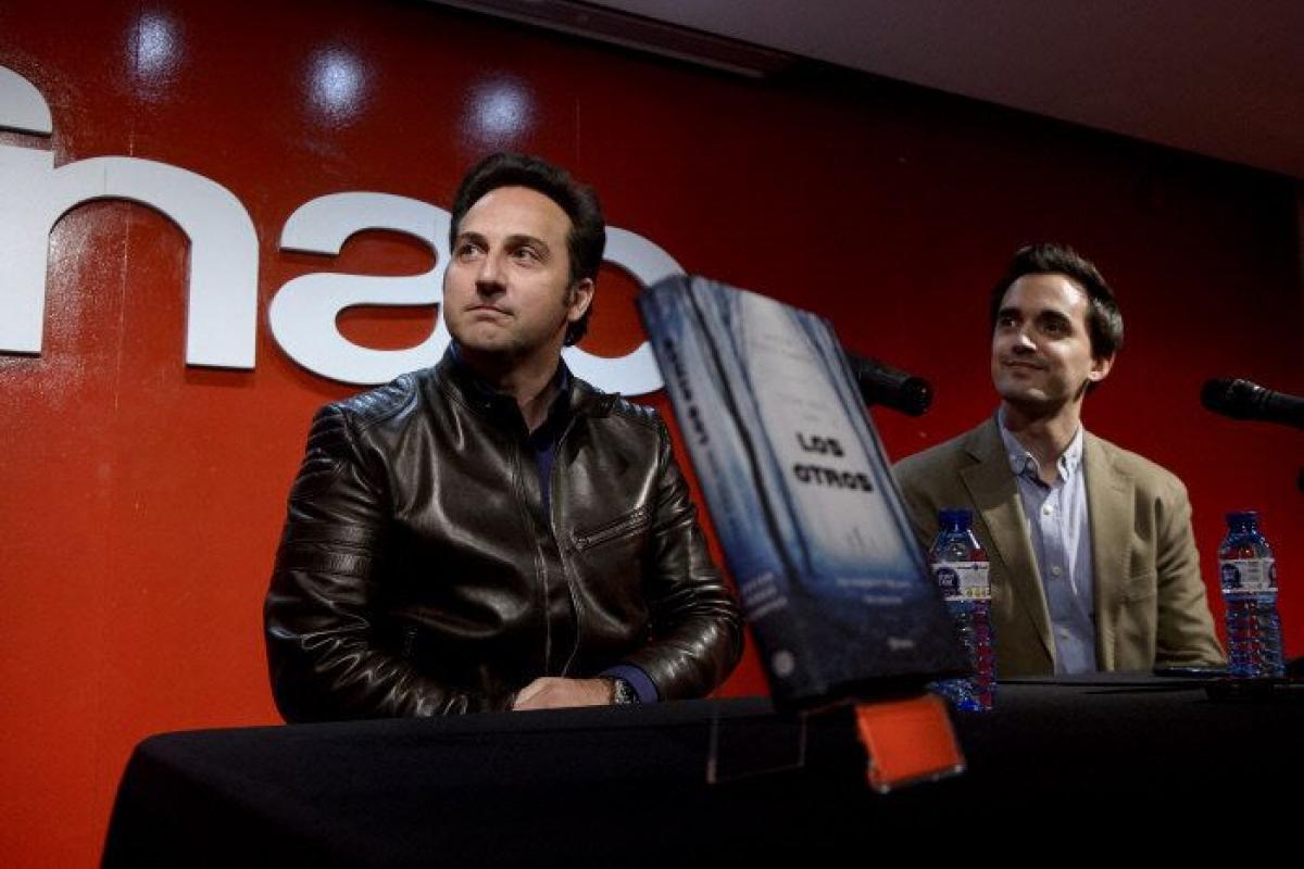 El periodista Iker Jimenez y Javier Perez Campos durante la presentacion del libro 'Estan aqui, son los otros' en Madrid el 26/01/17.GTRES