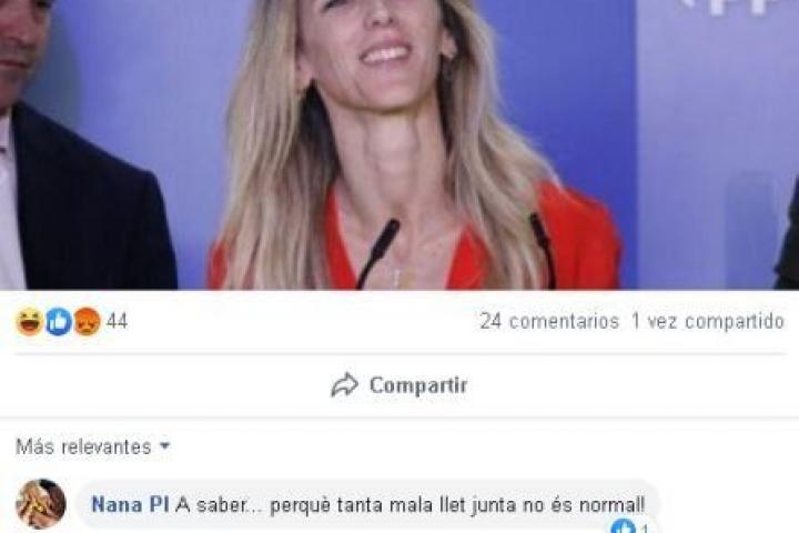 Compartiendo una fotografía de la diputada del PP, Mascarell ha escrito lo siguiente: “Buenas noches, ¿soy el único que ve que esta señora tiene un pito con cojones y todo atravesados en la garganta?”.