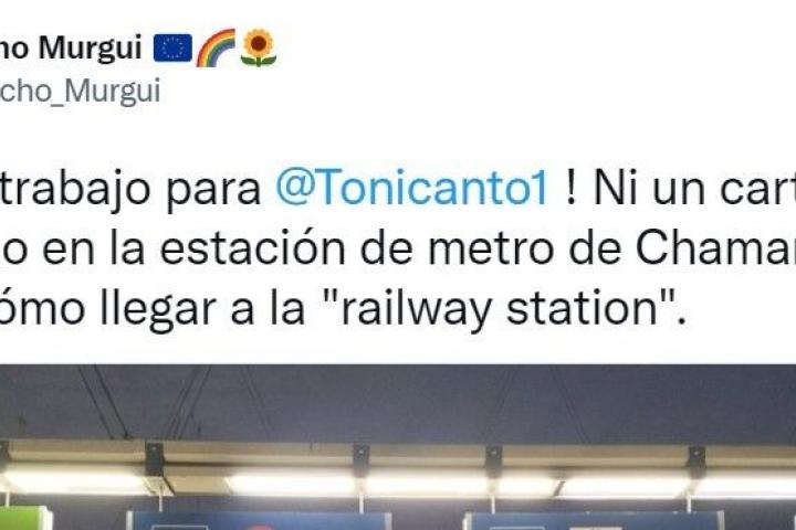 “Ni un cartel en castellano en la estación de metro de Chamartín para indicar cómo llegar a la railway station”, ha afirmado el político de Más Madrid.