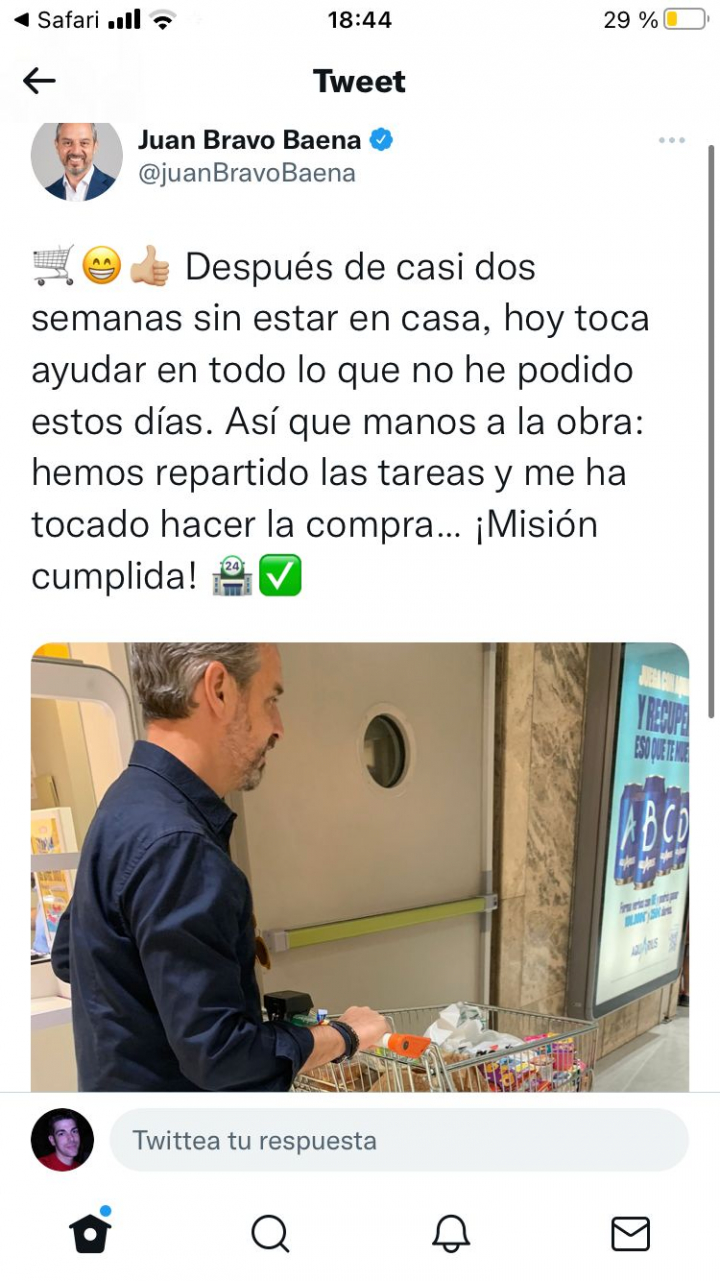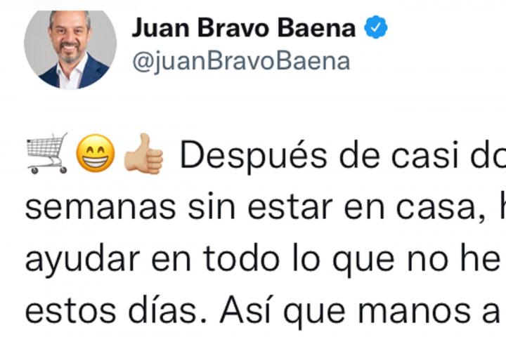 “Después de casi dos semanas sin estar en casa, hoy toca ayudar en todo lo que no he podido estos días”, había escrito Bravo junto a una foto en la que aparecía él mismo con un carro de la compra en un supermercado.