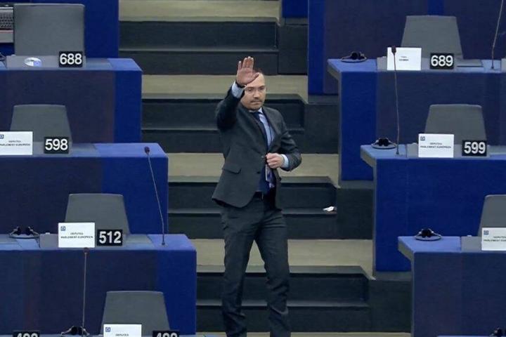 Un diputado búlgaro del grupo de Vox realiza el saludo nazi en el Parlamento Europeo