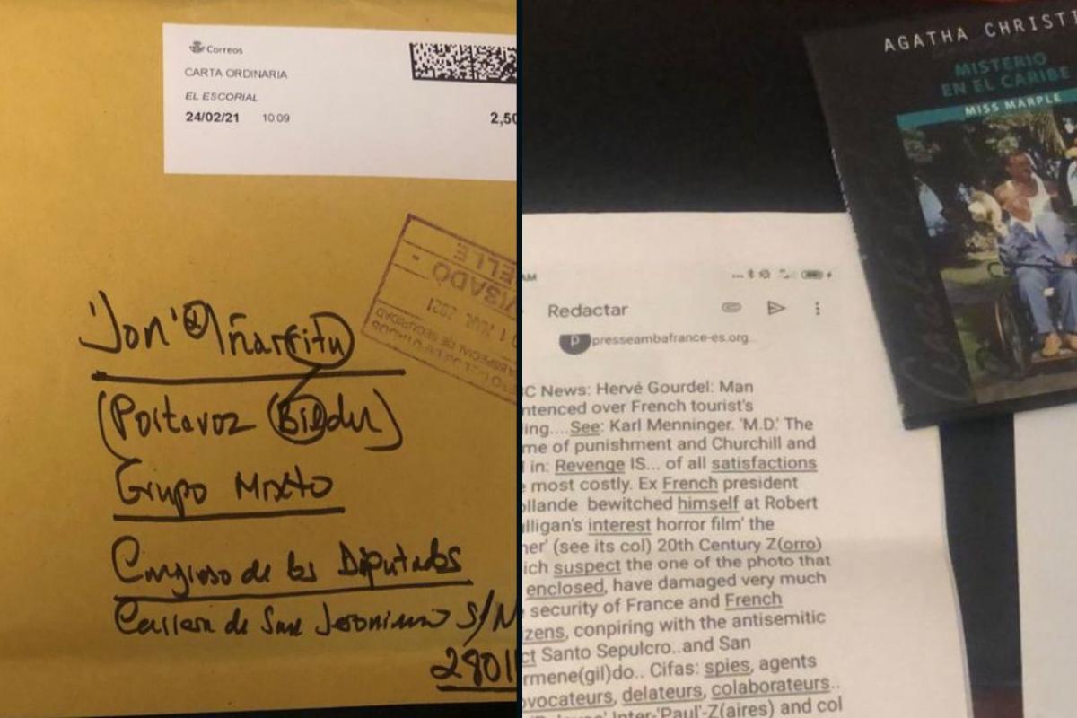 Una película basada en una novela de Agatha Christie y varias hojas escritas que no consiguió “descifrar”. El diputado de Bildu Jon Iñarritu ha afirmado este lunes en su cuenta de Twitter que el 11 de marzo recibió un sobre remitido desde El Escorial, Madrid. El contenido difiere, y bastante, al de la ministra de Industria, Reyes Maroto.