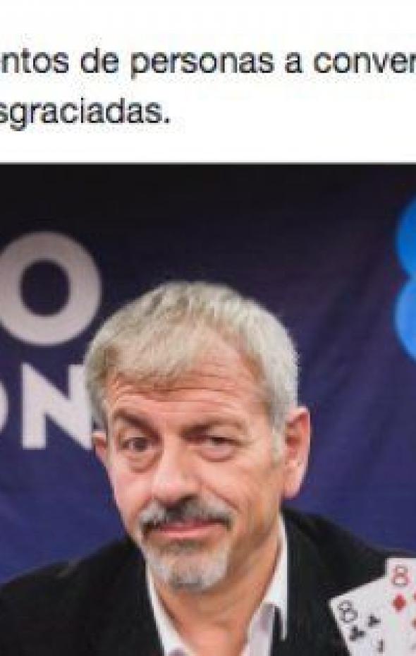 "Me pongo malo cada vez que veo a Carlos Sobera en televisión cediendo su imagen para que miles de jóvenes vayan a engancharse a las casas de apuestas. Estos anuncios llevan a cientos de personas a convertirse en ludópatas, y a sus familias las hacen unas desgraciadas", ha escrito.