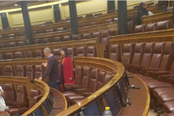 La imagen, según explica, la tomó en el hemiciclo una vez que los diputados catalanes se habían ido tras el pleno de este martes.