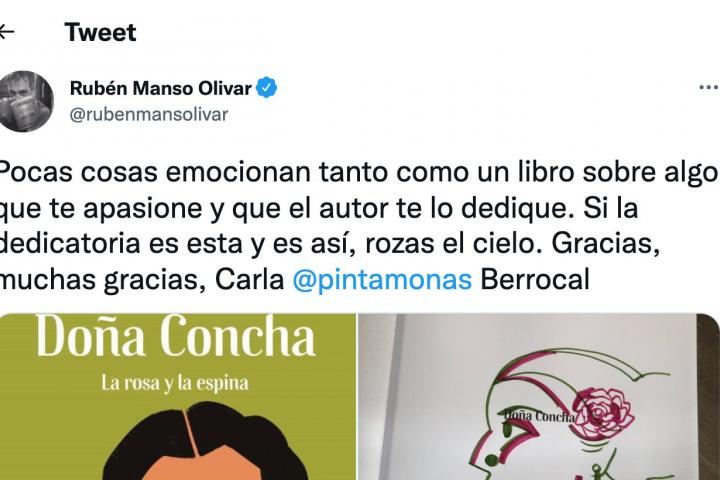 El diputado de Vox Rubén Manso Olivar ha compartido en su perfil oficial de Twitter la dedicatoria que le ha dejado la dibujante de cómics Carla Berrocal en su nuevo libro Doña Concha: la rosa y la espina.