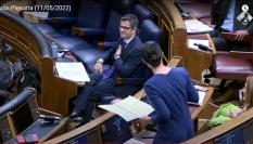 Ya antes de esta intervención, Macarena Olona había tenido un tenso enfrentamiento con Félix Bolaños, ministro de la Presidencia, Relaciones con las Cortes y Memoria Democrática, tras preguntarle en la sesión de control si era él responsable de velar por la seguridad del teléfono móvil del presidente del Gobierno.