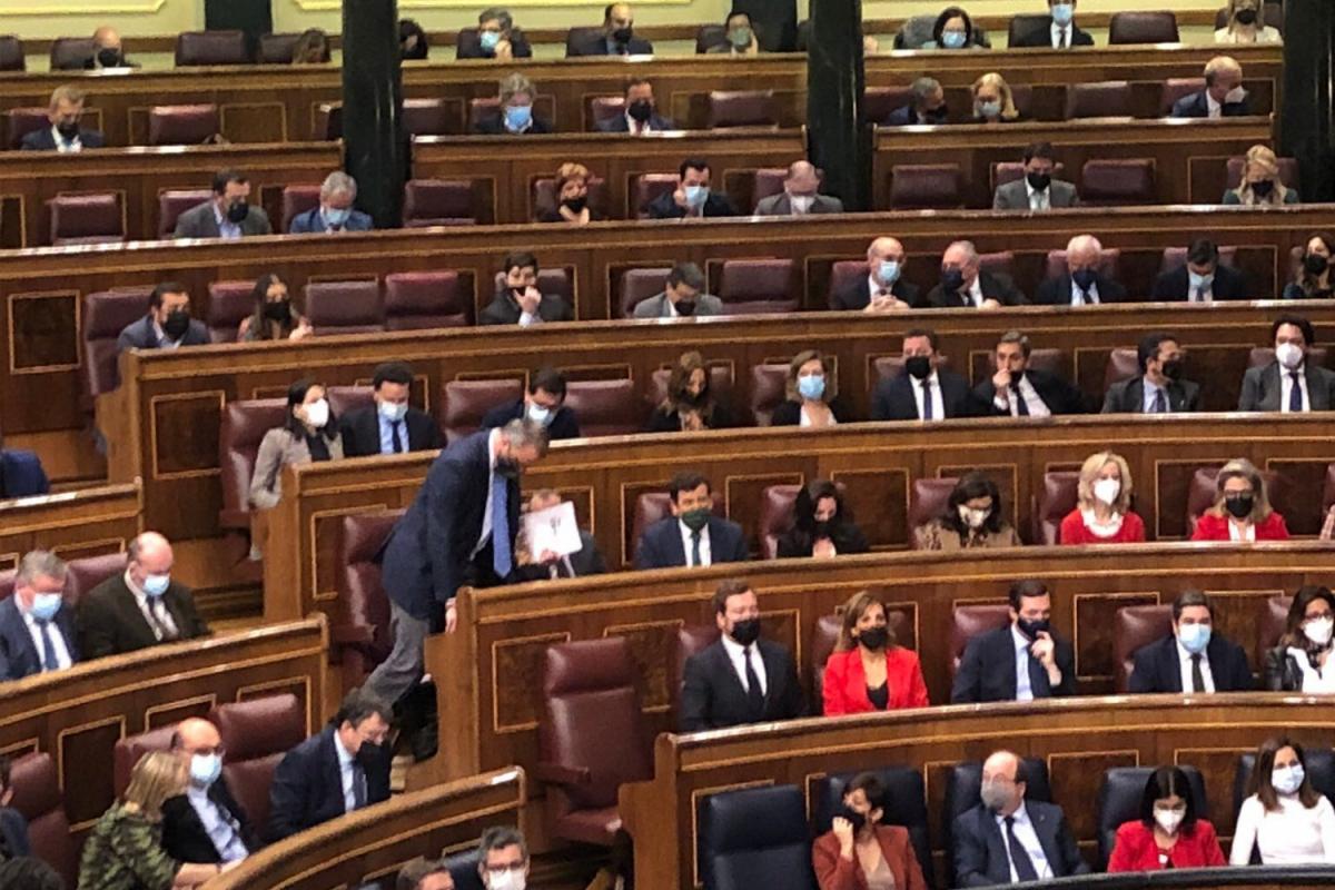 Arnau Ramírez, diputado del PSC en el Congreso, ha subido una foto a Twitter a las 9.25 de este miércoles en la que se muestra cómo el escaño del líder de Vox, Santiago Abascal, estaba ya vacío a esa hora.
