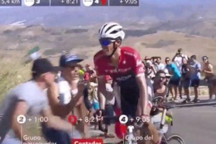 Un espectador de La Vuelta provoca un accidente de la manera más incomprensible