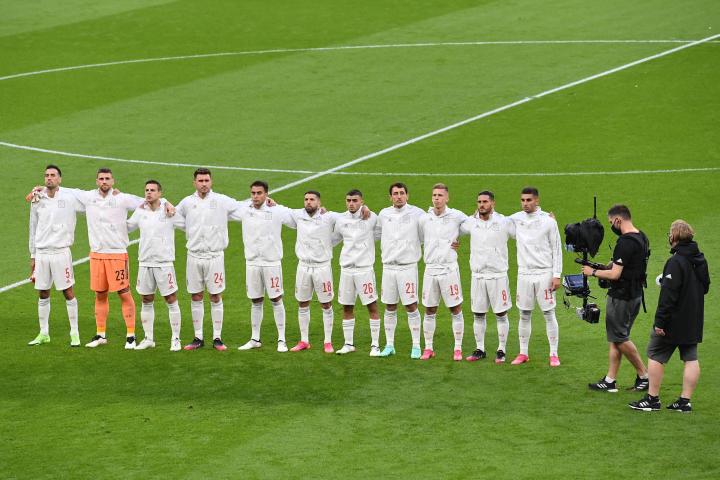 Los jugadores españoles, durante el himno.Getty Images