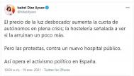 A esta frase ha respondido López Acuña, que ha aprovechado un tuit del diario El País para expresar su opinión. “Díaz Ayuso se niega a adelantar el toque de queda: ‘Para arruinar a la hostelería, conmigo que no cuenten’”, se podía leer en el titular del citado medio.