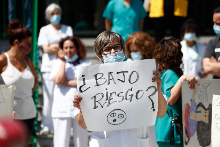 Manifestación de celadores en el Hospital 12 de Octubre de Madrid, el 13 de agosto de 2020.Europa Press via Getty Images