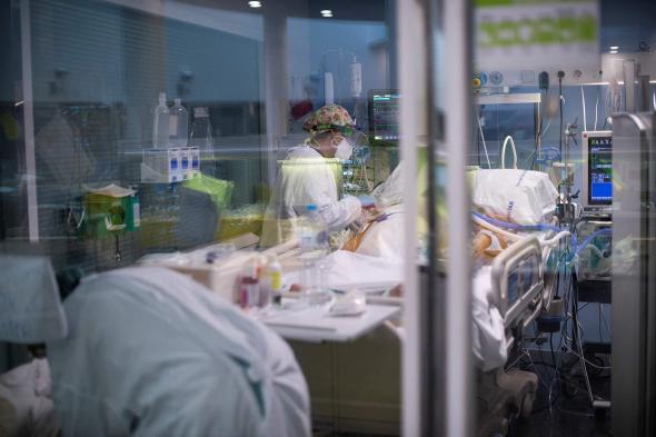 El cuerpo de una persona muerta por Covid, cubierta en su cama de un asilo de Barcelona, el 13 de noviembre de 2020.