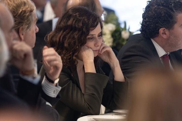 “Desconozco si la motivación es externa (discurso) o interna (agotamiento), pero lo que sí es evidente en @IdiazAyuso es que su mirada+posición corporal+gestualidad es de persona cansada y ausente”, ha certificado Ovejero.